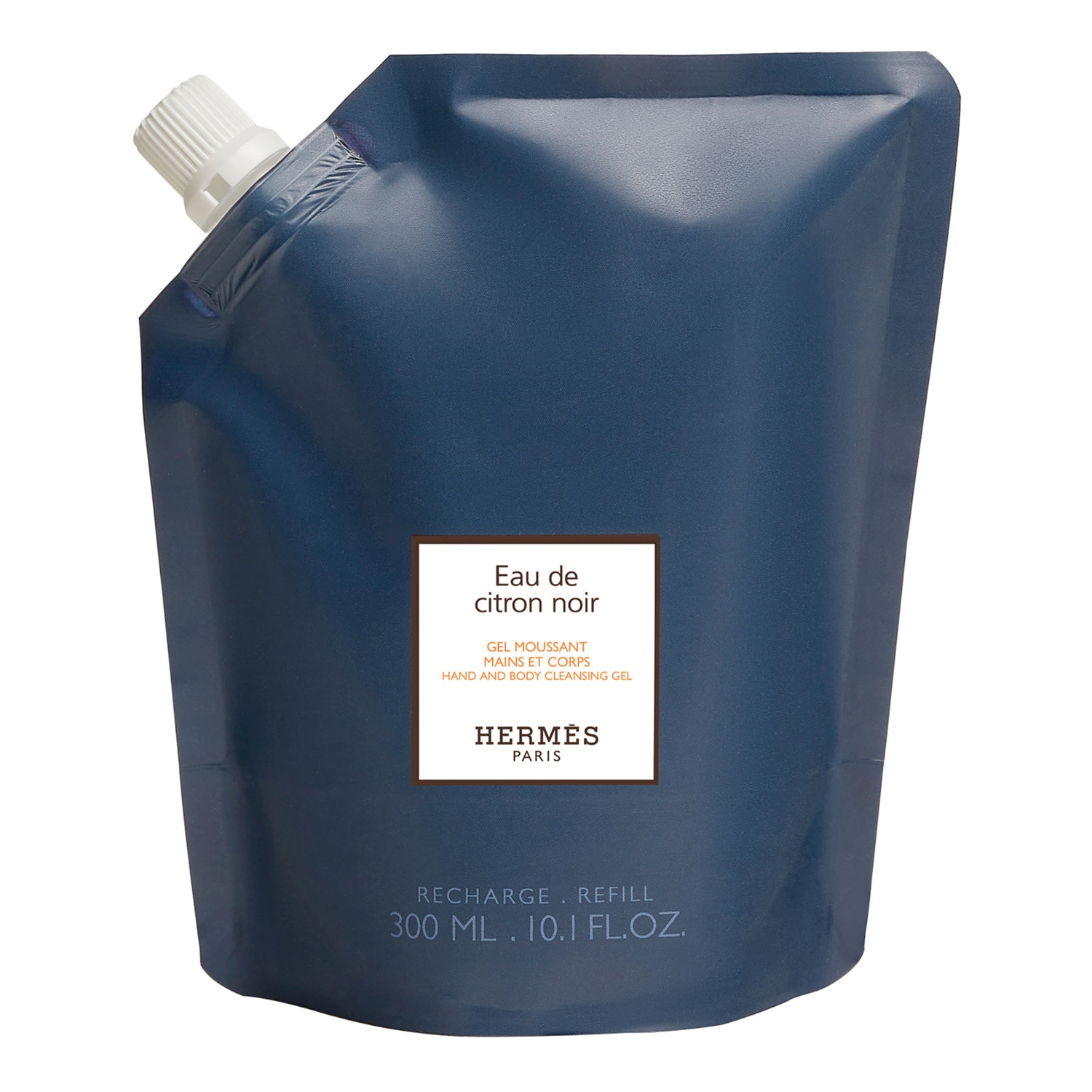 Okrągły kształt flakonu w kolorze intensywnego, głębokiego błękitu symbolizuje wodę kolońską Eau de Citron Noir. Zawiera dwa charakterystyczne detale: wytłoczenie litery H na podstawie oraz grawer Clou de Selle na pompce.