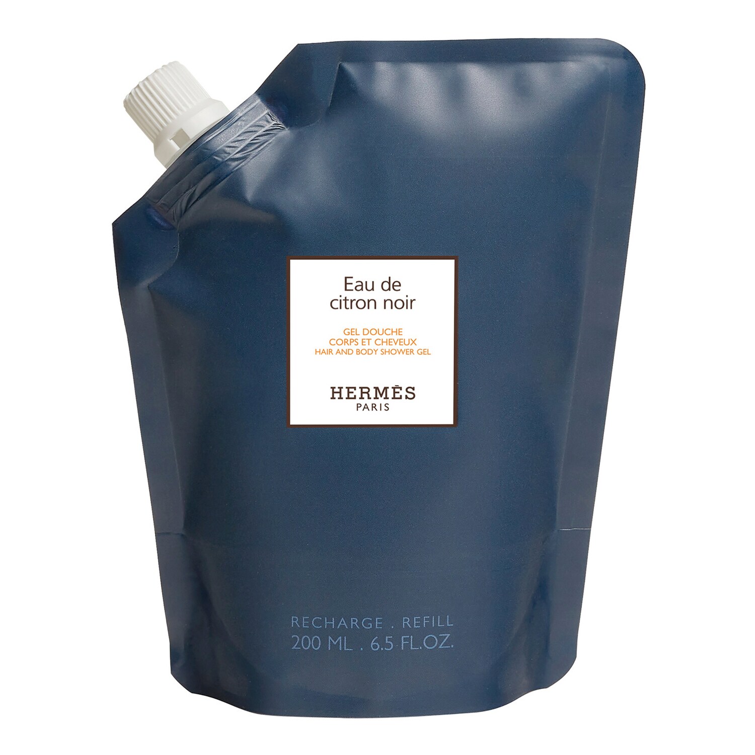 Okrągły kształt flakonu w kolorze intensywnego, głębokiego błękitu symbolizuje wodę kolońską Eau de Citron Noir. Zawiera dwa charakterystyczne detale: wytłoczenie litery H na podstawie oraz grawer Clou de Selle na pompce.