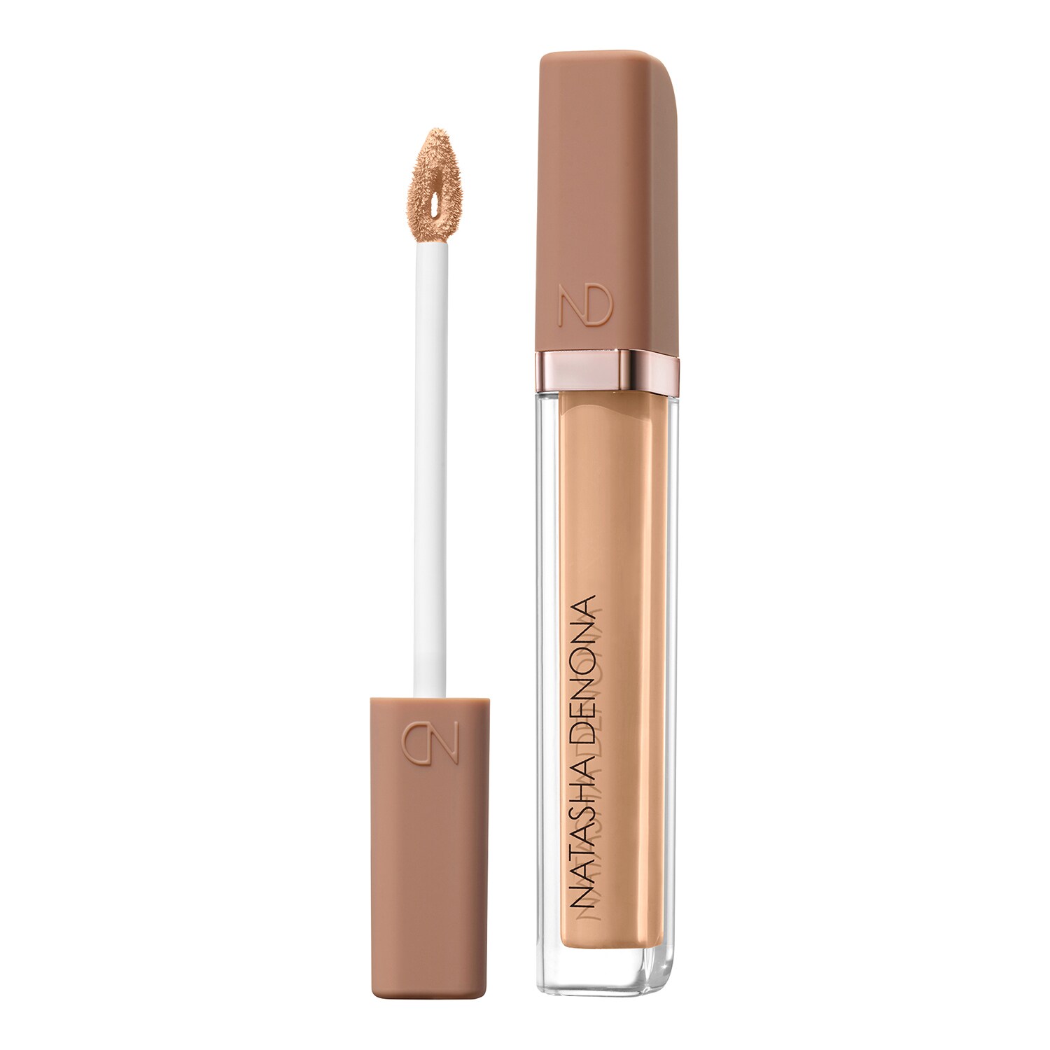 Użyj płaskiej części aplikatora, aby nanieść produkt pod oczy i na duże obszary twarzy, aby w pełni ją pokryć.