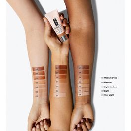 Silnie składniki nawilżające, w tym kwas hialuronowy i aktywowana woda aloesowa, sprawiają, że skóra jest sprężysta i pełna blasku aż przez 12 godzin. Delikatny odcień doskonale wyrównuje koloryt i pielęgnuje skórę o każdej karnacji. Formuła odporna na pot i wilgoć pozostawia skórę świeżą i naturalnie gładką przez cały dzień. Produkt beztłuszczowy.