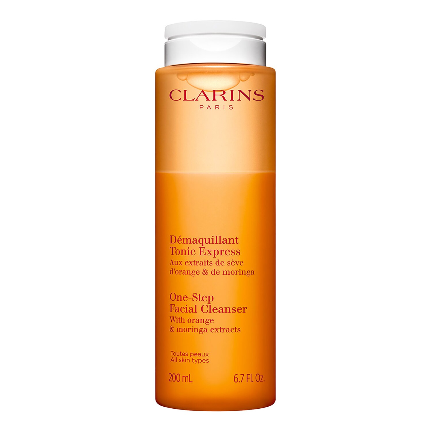 Dwufazowy produkt oczyszczający, który usuwa makijaż, oczyszcza i przywraca skórze blask w jednym kroku. Ten dwufazowy płyn do demakijażu to idealne połączenie produktu oczyszczającego i mleczka, które pozostawia skórę czystą w jednym prostym kroku. Ta tonizująca pielęgnacja twarzy z ekstraktami z pomarańczy i moringa usuwa wszelkie ślady makijażu i oczyszcza skórę z zanieczyszczeń i martwych komórek. Wyciąg z moringa zapobiega osadzaniu się zanieczyszczeń na skórze. Aby zminimalizować swój wpływ na środowisko, Clarins przeprojektował ten produkt w jeszcze bardziej przyjaznej dla środowiska butelce z lżejszą kapsułką. Wstrząśnij butelką, aby połączyć obie fazy. Na oczyszczoną skórę: nasącz dwa płatki kosmetyczne produktem One-Step Facial Cleanser i delikatnie rozprowadź na twarzy i szyi. Stosuj co wieczór.