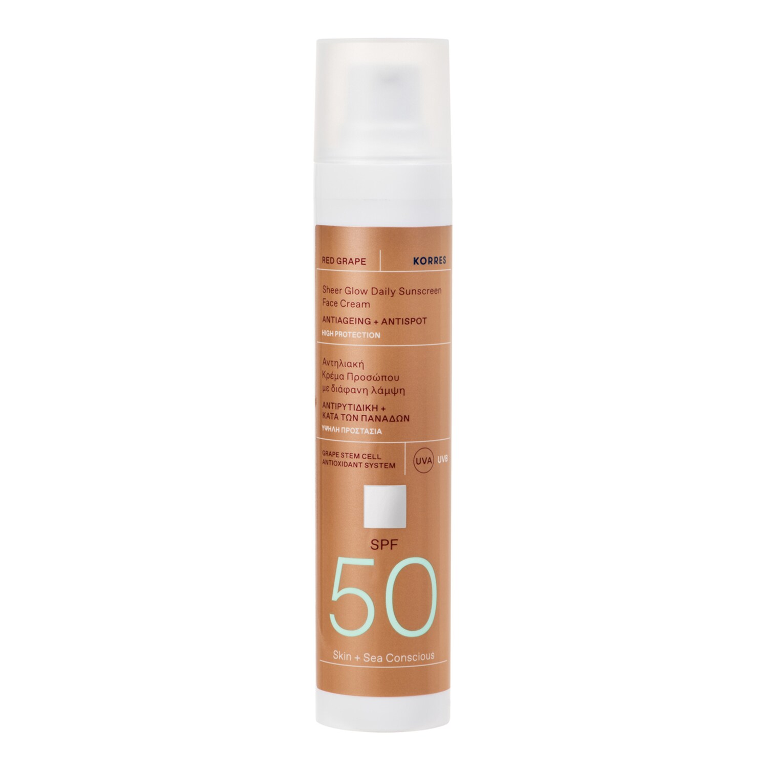 Rozświetlający krem z filtrem przeciwsłonecznym, który natychmiast dodaje skórze blasku, jednocześnie chroniąc przed fotostarzeniem - główną przyczyną przedwczesnego starzenia się skóry. Wzbogacony ekskluzywnym systemem Korres Dual-Antioxidant System i komórkami macierzystymi z czerwonych winogron, dzięki którym pomaga zmniejszyć widoczność przebarwień i zmarszczek, zapewniając równomierny koloryt skóry.