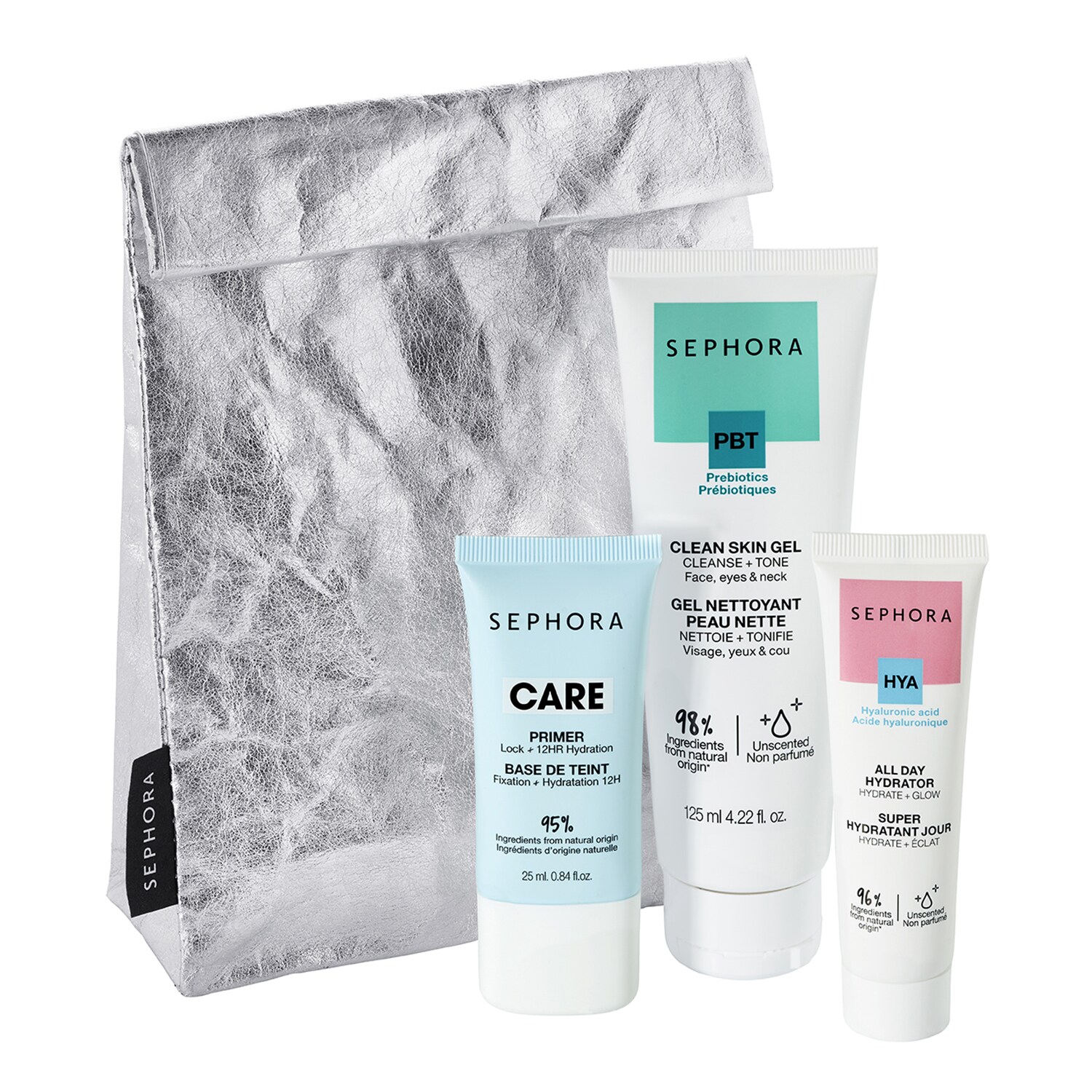 Najpiękniejsze makijaże na święta są warte kompleksowego przygotowania. Zestaw do pielęgnacji twarzy przygotowany specjalnie na Boże Narodzenie składa się z 3 produktów SEPHORA COLLECTION. Zawierają ponad 90% składników pochodzenia naturalnego, dzięki którym przygotujesz skórę do makijażu w zaledwie 3 krokach. Po prostu oczyść skórę twarzy Żelem oczyszczającym. Następnie nawilż ją Kremem intensywnie nawilżający na dzień i utrwal Bazą pod makijaż. Skóra jest odprężona, a makijaż trzyma się dłużej. Zestaw spakowany jest w srebrne etui, które pięknie się prezentuje jako świąteczny podarunek.