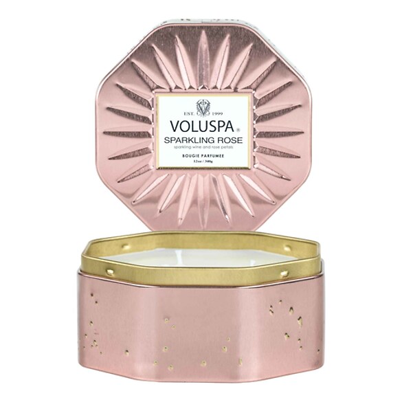 Vermeil Sparkling Rose Octagon Tin Candle - Świeca
