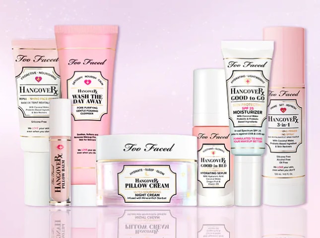 Hangover to rewolucyjna baza pod podkład wzbogacona wodą kokosową, składnikami opartymi na probiotykach i środkami odnawiającymi skórę, które współpracują, aby rozjaśnić skórę, zwiększyć jej elastyczność i pomóc ją nawilżyć, jednocześnie utrwalając makijaż i sprawiając, że będzie on wyglądał świeżej, gładziej i dłużej się utrzyma.